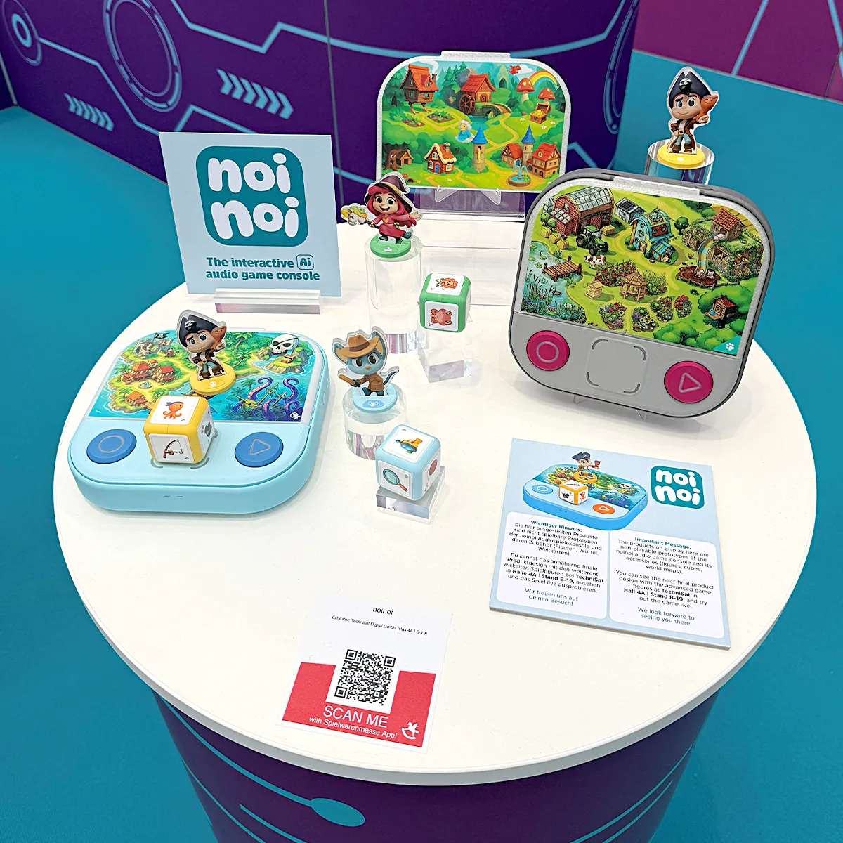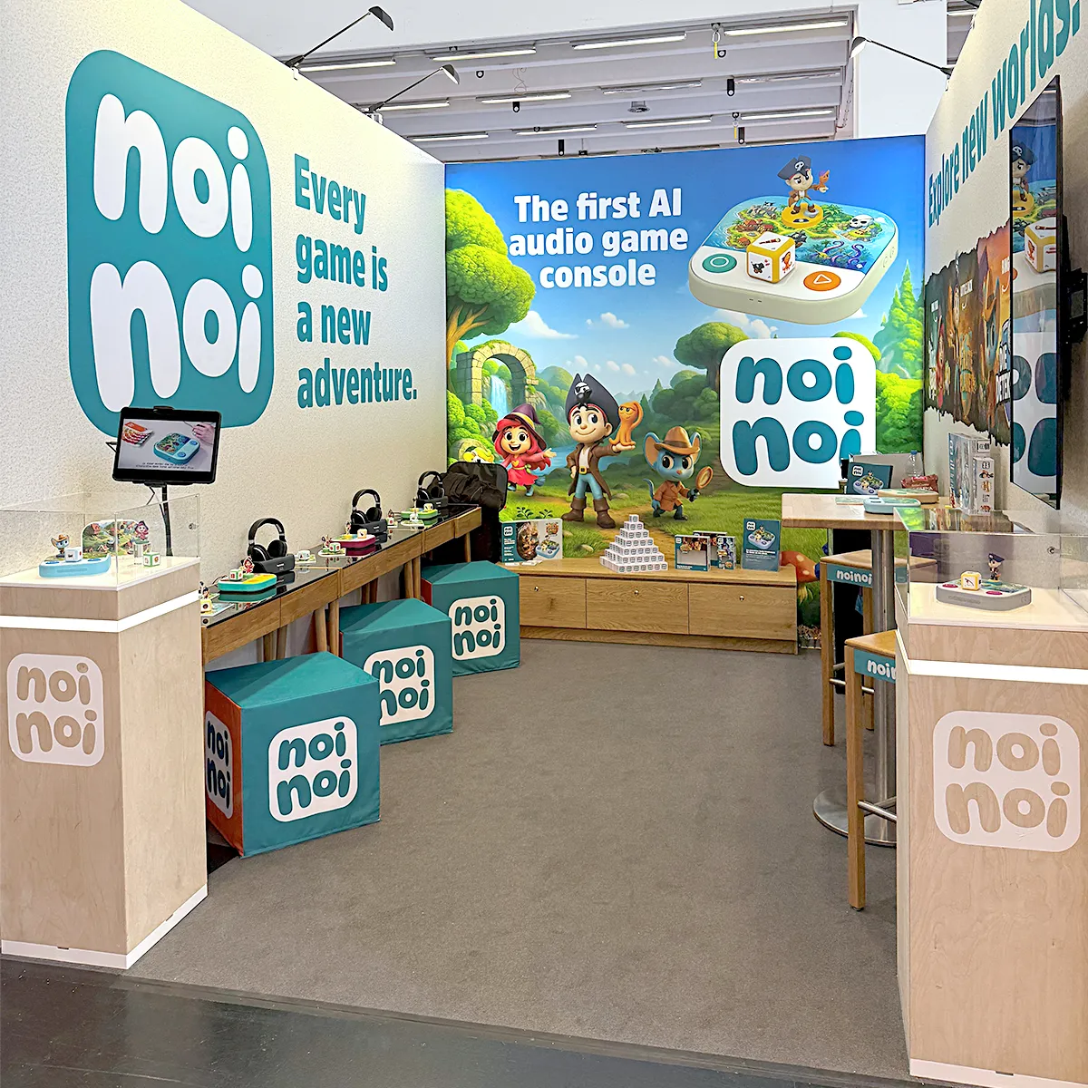 Das Interesse war durchweg spürbar. Zahlreiche Besucherinnen und Besucher aus Handel, Medien und dem Bildungsbereich wollten noinoi selbst ausprobieren und mehr über das Konzept erfahren. Besonders im Fokus stand unser interaktiver Ansatz: noinoi versteht sich nicht als reines Abspielgerät, sondern als System, das Kinder aktiv in Geschichten einbindet. Die dynamischen, sich nicht wiederholenden Storyverläufe wurden dabei häufig als besonderer Mehrwert hervorgehoben – auch im Kontext frühkindlicher Förderung.